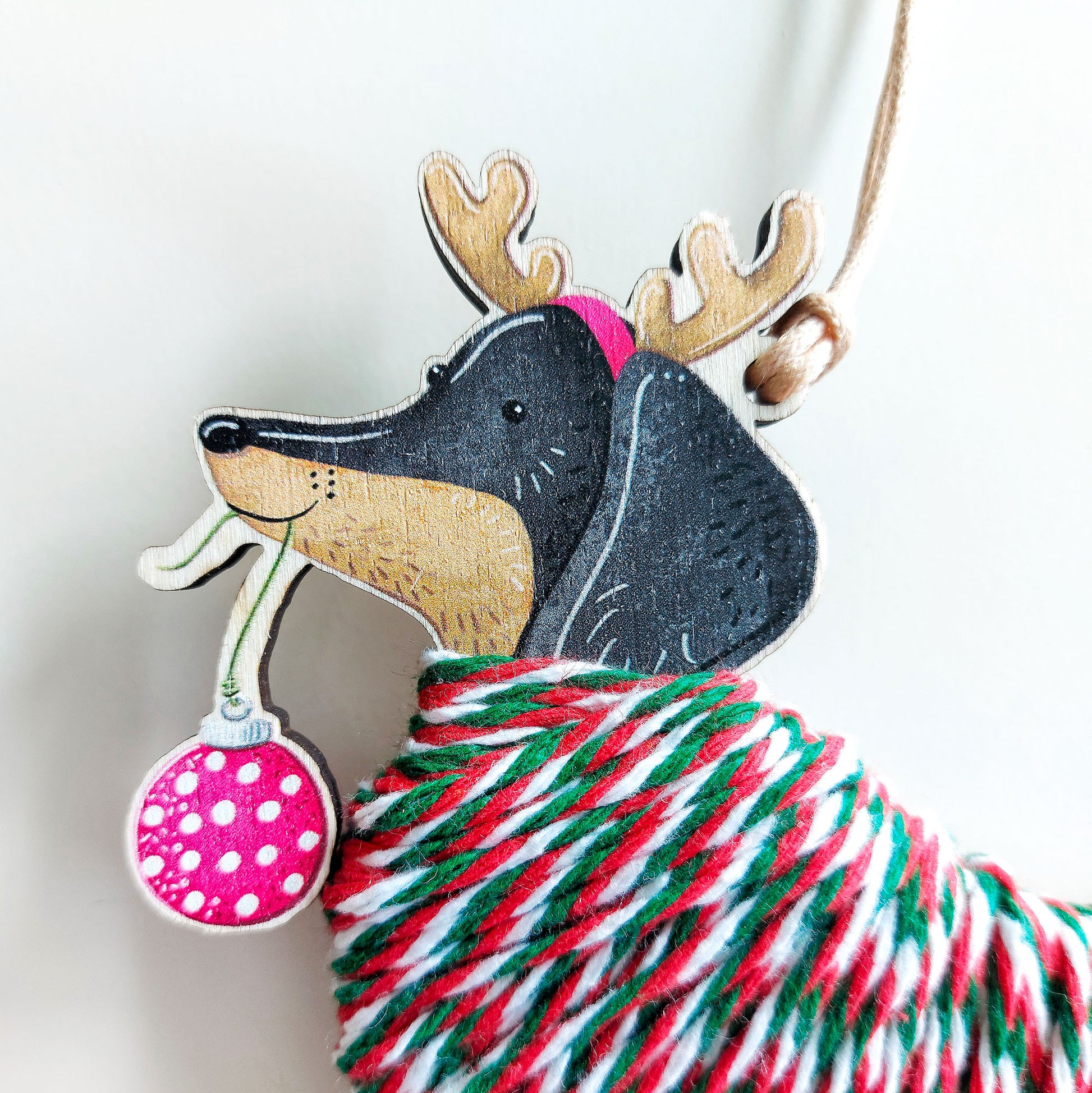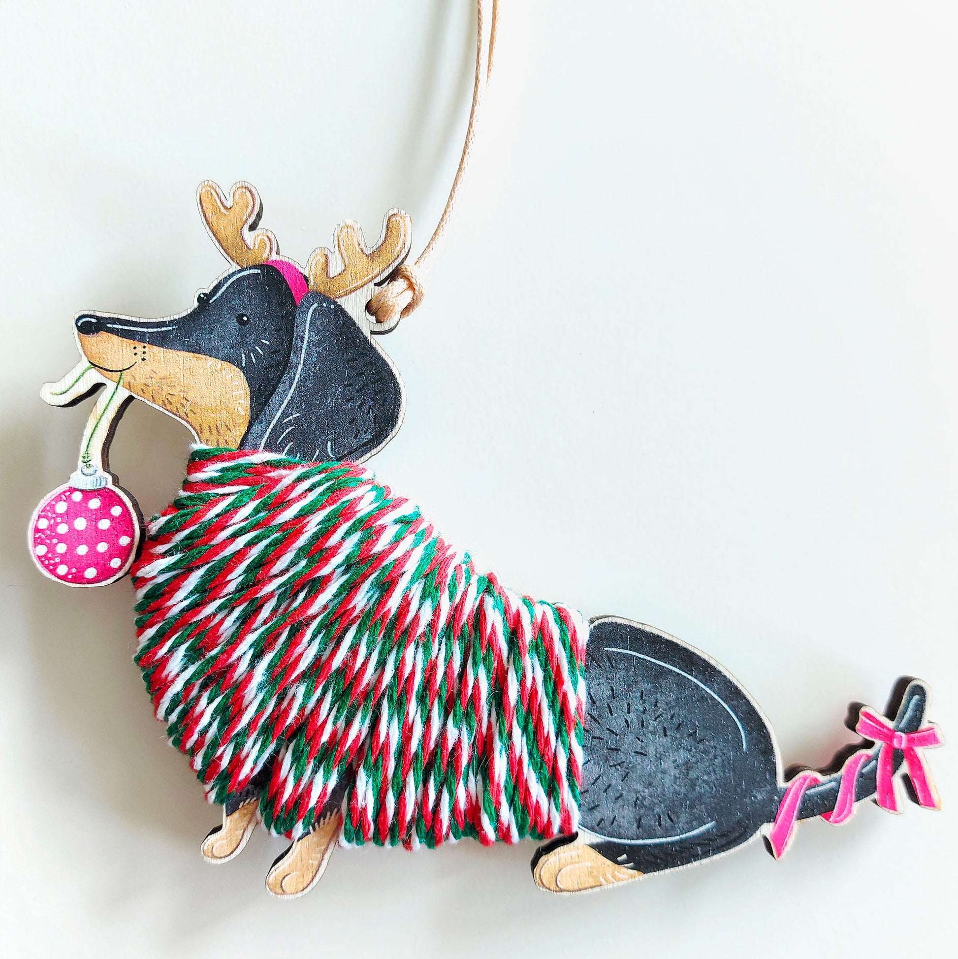 Spruce up your Christmas tree with this quirky wooden Dachshund ornament, complete with twine for wrapping your presents.
