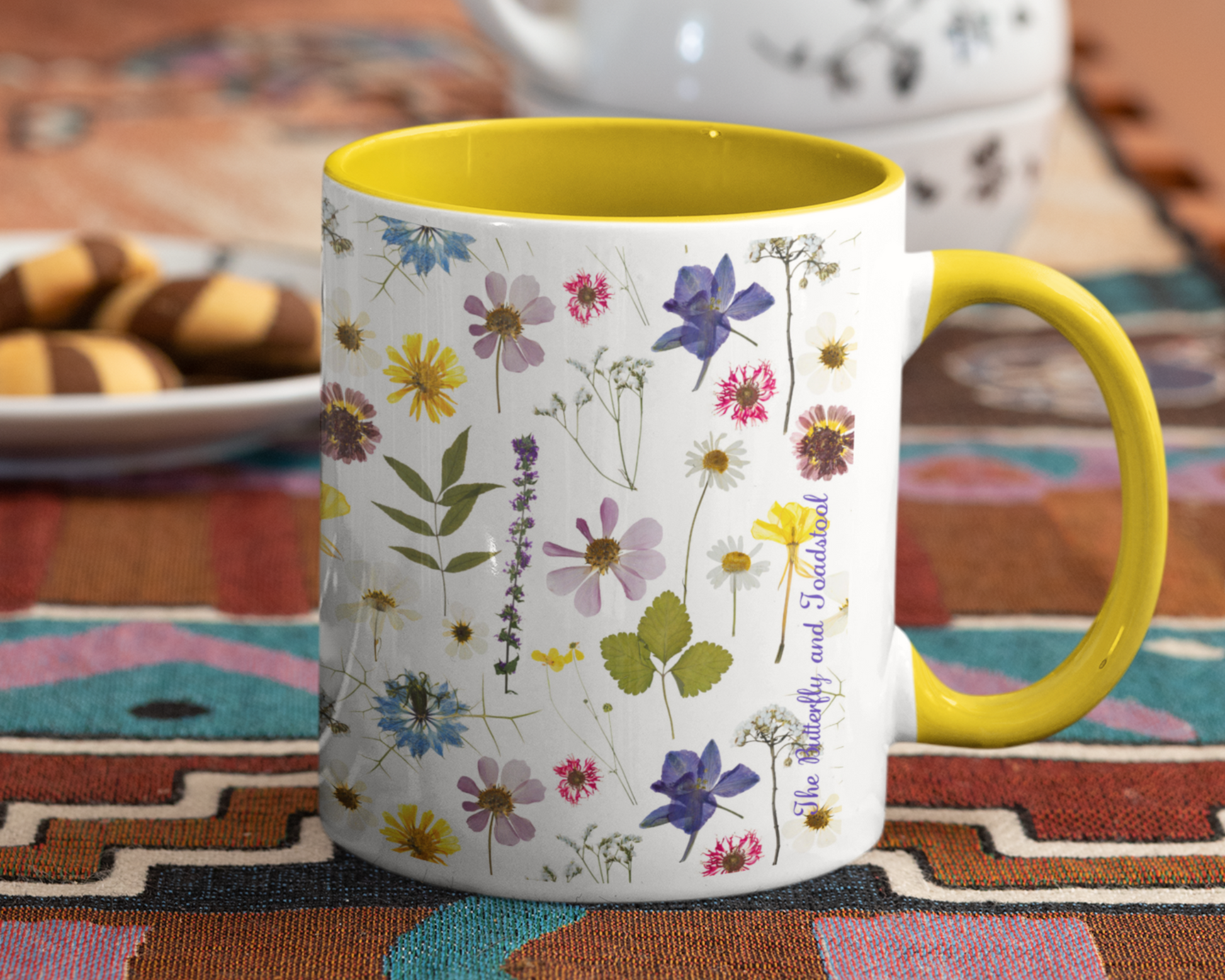Made even more beautiful as it features a yellow coloured rim, handle and inside, so this mug is bound to brighten up your morning coffee!
